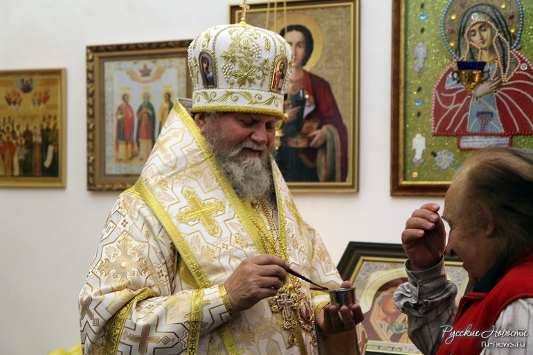 После Литургии архиепископ Михаил приветствовал верующих и поблагодарил за самоотверженный труд и напряженный труд по созданию и развитию церковной общины, а так же выразил благодарность настоятелю храма сего иерею о. Павлу Гемпелу, а так же протоиерею Евгению Червинскому, основавшему 10 лет назад данный приход. Также Владыка Михаил выразил восхищение хором и иконостасом храма.
