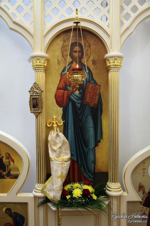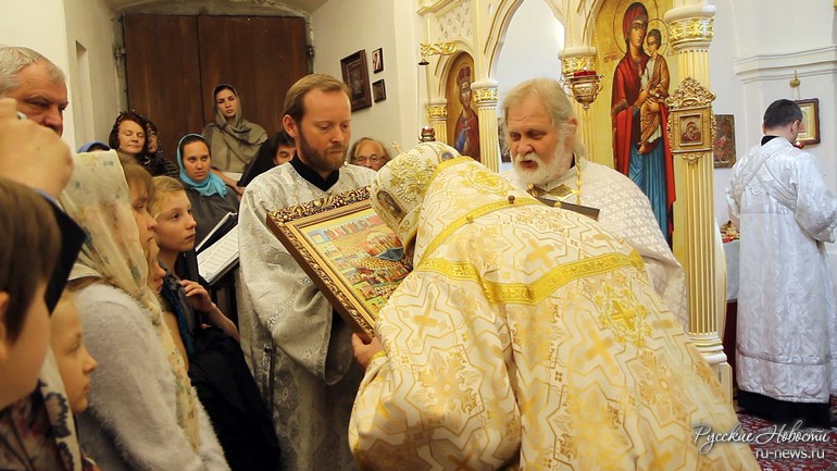 После Литургии архиепископ Михаил приветствовал верующих и поблагодарил за самоотверженный труд и напряженный труд по созданию и развитию церковной общины, а так же выразил благодарность настоятелю храма сего иерею о. Павлу Гемпелу, а так же протоиерею Евгению Червинскому, основавшему 10 лет назад данный приход. Также Владыка Михаил выразил восхищение хором и иконостасом храма.