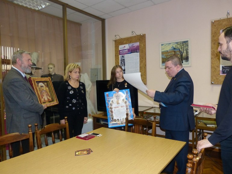 Награждение провели советник Первоиерарха РПЦЗ митрополита Илариона, начальник Войсковой Православной Миссии Игорь Евгеньевич Смыков и член Попечительского Совета ВПМ, генеральный директор Института изучения реформ и предпринимательства Климашевская Ольга Леонардовна.