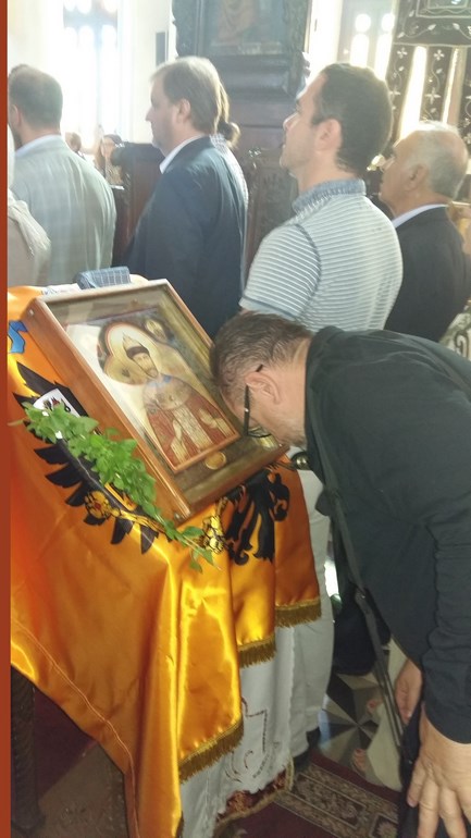 После окончания Божественной литургии настоятелем храма протоиереем Василием Головановым был отслужен молебен перед Чудотворной мироточивой иконой Государя.