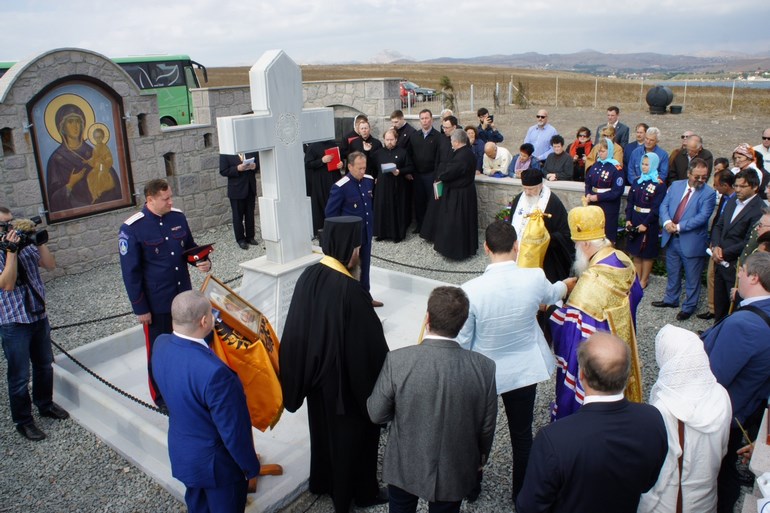 Священники отслужили панихиду перед Памятным Крестом у захоронений.