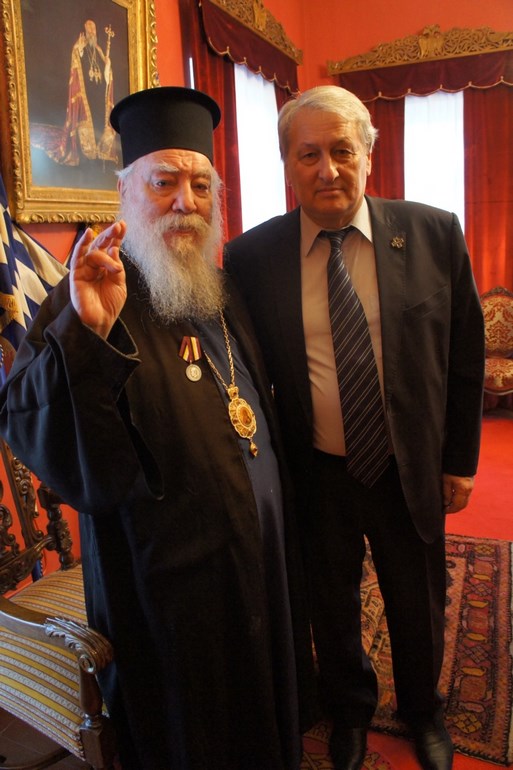 Со своей стороны Высокопреосвященнейший владыка Вениамин — за труды по принесению в Приморский край чудотворного мироточивого образа святого царя страстотерпца Николая и участие в торжествах по случаю 125-летия посещения Цесаревичем Николаем Александровичем Владивостока и Южно-Уссурийского края, — вручил: