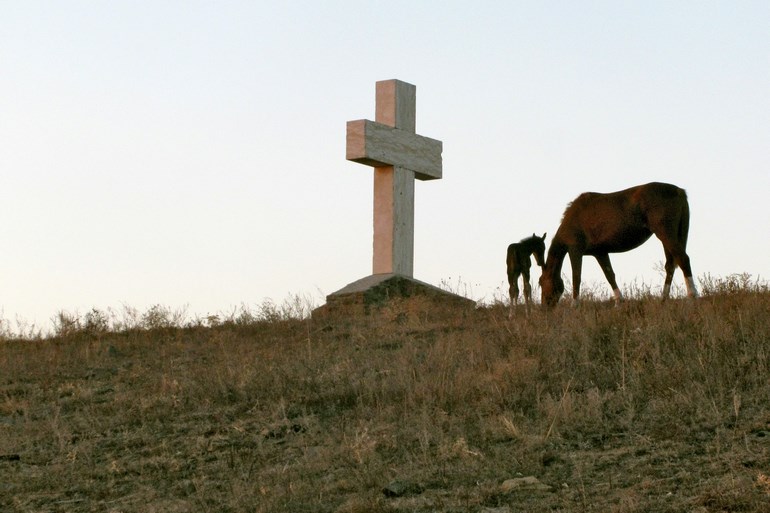 Проект «Планета Русь» буквально вырос из Священного Холма, который построили и освятили в 2007 году. Холм увенчан 10-метровой голгофой, которая смотрит на древний город Изборск, на первую в истории нашей страны каменную крепость.