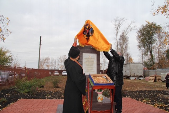 В присутствии Чудотворной мироточивой иконы Царя Николая, привезённой из Москвы, ветераны боевых действий Евгений Федоров и Андрей Колчин торжественно разрезали ленту, настоятель храма иерей Евгений Видяев и начальник Войсковой Православной Миссии Игорь Смыков сняли Императорский штандарт с монумента под гимн «Боже, Царя храни!»