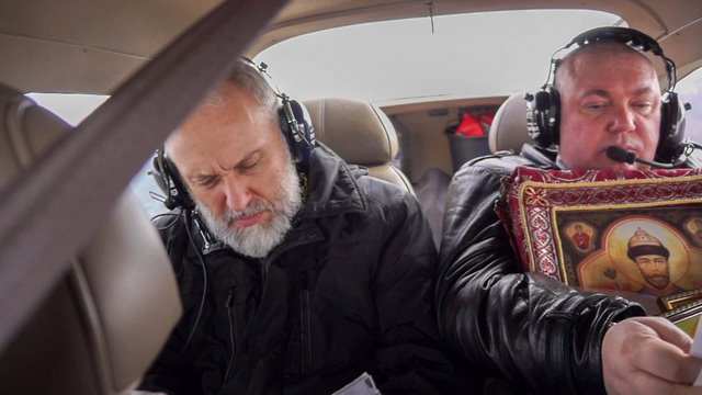 During the entire flight, a group of Orthodox St. Petersburger’s prayed at the airfield near the image of the «Gracious Heaven» of the Holy Virgin, whose holiday on this day is celebrated, as well as before the icon of the Holy Martyr Haralampius, especially revered by the Emperor Paul Petrovich, and the Icon of the Mother of God of Magadan, so that the Queen of Heaven may favorably grant all everything prosperous for today’s flight with the myrrh-streaming icon of Tsar Nicholas! They asked for prayers for Archpriest George, pilot Artemy, cameraman Kirill, warrior Igor.