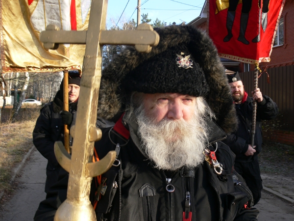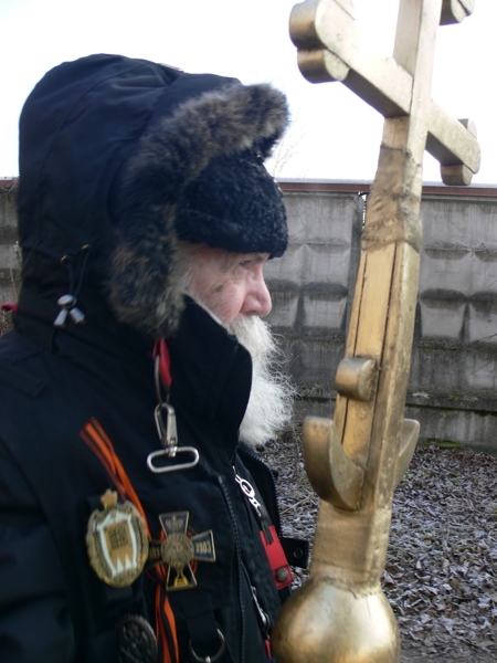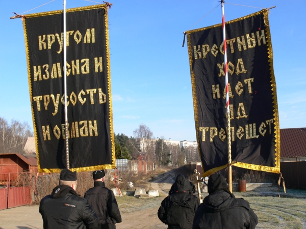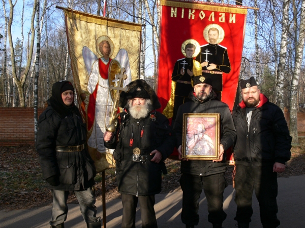 Леодин Донатович взял Крест – навершие, изготовленный в 90-е. Степану дали икону Императора Павла I. Алексий взял хоругвь с Царём мучеником Николаем II и Царевичем Алексием с надписью на обратной стороне «Вокруг измена, трусость и обман» (слова Царя Николая ). Валерий взял хоругвь с Архистратигом Михаилом с надписью на обратной стороне «Крестный ход идёт ад трепещет». Эти хоругви были сделаны Екатериной Даниловной для Хоругвеносцев ещё до прославления Царственных мучеников. Александр фотографировал, а Виктор Дмитрич молился.