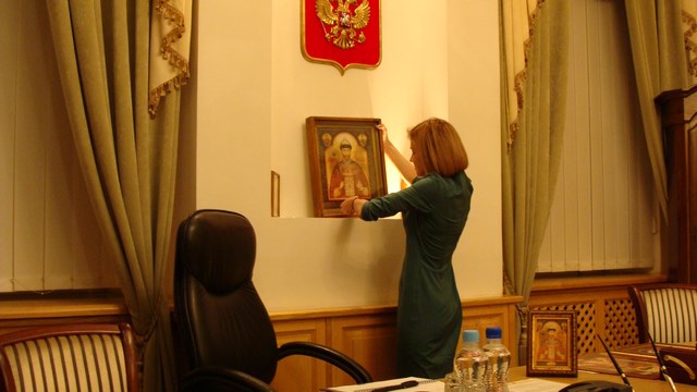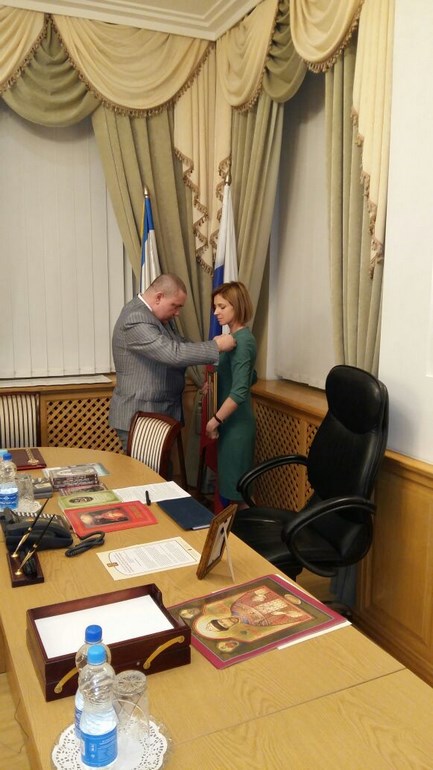 Высокую православную награду Н. В. Поклонской вручили И. Е. Смыков и П. В. Мультатули.