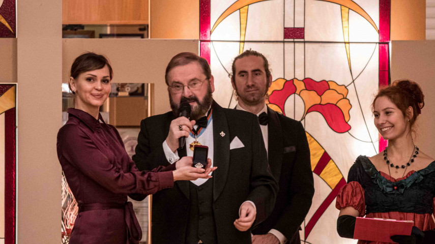 Председатель Всероссийского Монархического Центра Николай Николаевич Лукьянов-Разумовский поблагодарил Елену Григорьевну Ерошкину за вклад в возрождение лучших традиций Отечественной культуры и по поручению Правления Имперского Наградного Совета и вручил ей Памятный Знак в виде — «Российской Императорской короны».