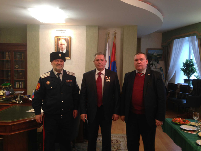 Высокой православной награды за подписью вдовы племянника Императора Николая Второго Ольги Николаевны Куликовской – Романовой, Председателя БФ имени Ея Императорского Высочества Великой Княгини Ольги Александровны, Тамбовский Атаман удостоен «За многолетние миссионерские и просветительские труды, любовь к Богу, верность Царю и Отечеству».