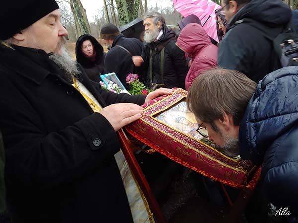 А 30 декабря в Царском Селе у Поклонного Креста в Александровском парке Царского Села по традиции после Литургии в Феодоровском Государевом соборе сюда крестным ходом пришла группа московских паломников, которые накануне прибыли на автобусе из столицы специально на дни памяти Царского Друга.