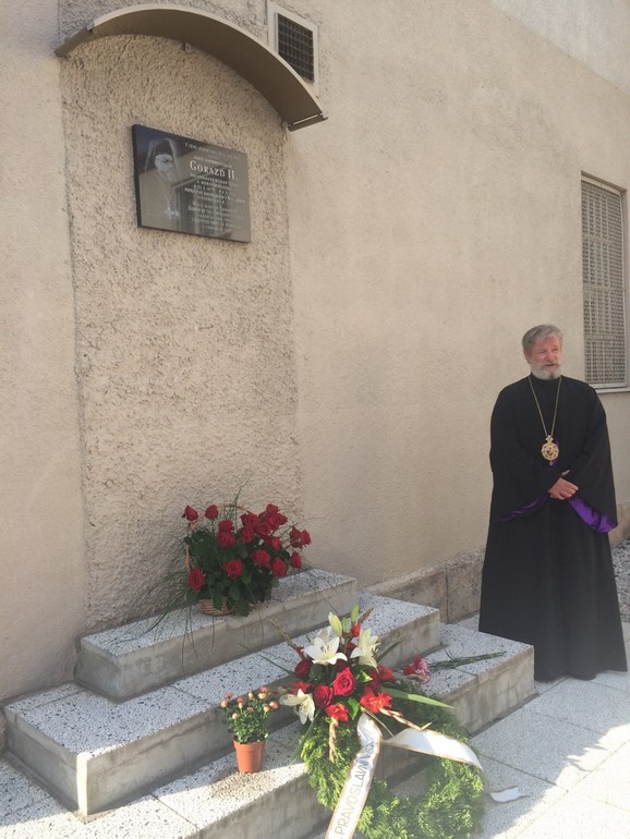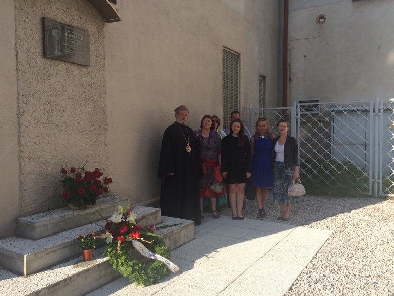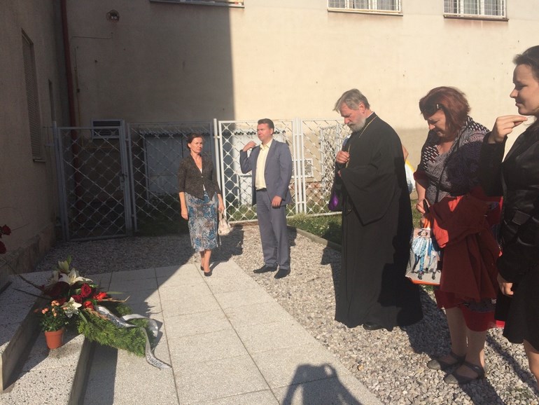 По окончании панихиды, у мемориальной доски на стене пражской панкрацкой тюрьмы, где накануне расстрела содержался Епископ Чешский и Моравско-Силезский Горазд, священством во главе в Владыкой Михаилом был совершён молебен.