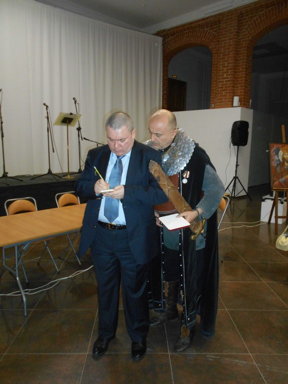 Когда сели в машину к Виктору Петровичу он неожиданно сказал: «Знаете, я Вам Леонид Донатович, подарю замок с ключом от храма, древний, который стоял на его дверях. Когда храм разоряли, я его сохранил, а затем немного даже отреставрировал и думал подарить его сербам, но случай не свёл меня с ними. И вот когда этим утром я поехал по другой дороге и встретил Вас, то это не спроста…». У его дома мы остановились, зашли во двор, обсаженный по краям виноградом. Дождь почти прекратился. Виктор Петрович вынес замок с ключом, размеры замка нас поразили – огромный – килограмм десять на вес со старинными латунными ручками – такой впору и на Храм Христа Спасителя поставить. «А вот ключ, я его хромировал и поэтому он сейчас так блестит, этим ключом Ваши предки открывали храм, а теперь я дарю его вместе с замком Вам, Леонид Донатович!» — и он передал все это в руки Главе Союза Православных Хоругвеносцев, Председателю Союза Православных Братств России, Председателю общества «Славяно-Сербия» Леониду Донатовичу Симоновичу – Никшичу.