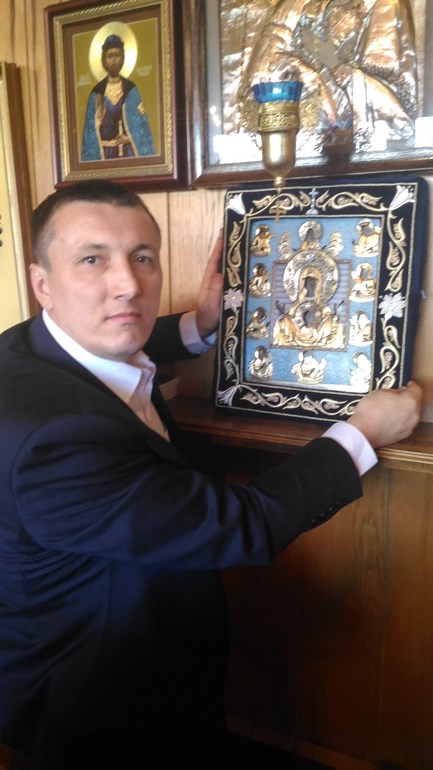 Координатор СПБ РПЦ Юрий Агещев встретился с Дейвом Мастейном из Megadeth и подарил ему православную икону