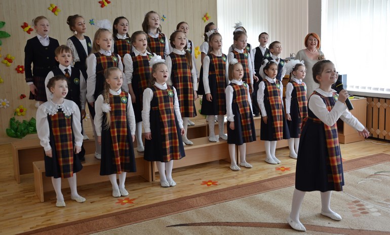 Участников республиканской конференции любезно встретила хозяйка, детского сада-школы «Saulutė», директор Анжелика Селезнёва. Проведя ознакомительную экскурсию по саду и начальной школе, гостеприимные сотрудники дошкольного учреждения пригласили коллег с Вильнюса и Клайпеды на импровизированный концерт дошкольного творчества воспитанников детского сада «Saulutė».
