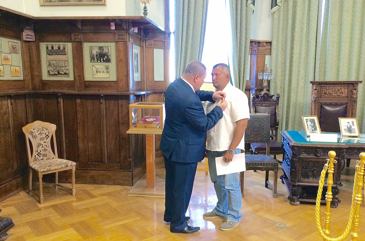 1 сентября 2015 г. в Ливадийском дворце, расположенном в живописном месте Крымского полуострова близ Ялты, начальник Войсковой Православной Миссии Игорь Евгеньевич Смыков вручил члену Попечительского Совета Войсковой Православной Миссии Денису Алексеевичу Родионову юбилейную медаль «В память Великой войны», посвященную Столетию Первой мировой войны.