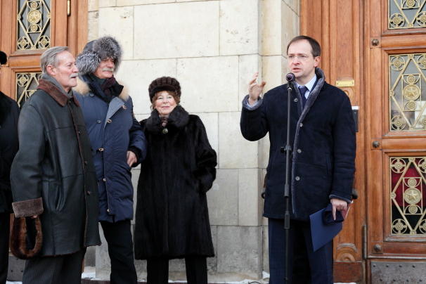 — Сегодня действительно памятный день. Мы открываем мемориальную доску, на доме где замечательный человек прожил почти 20 лет. Когда к нам обратился Юрий Мефодьевич и Никита Сергеевич от имени Малого театра и кинематографистов, мы сразу занялись этим вопросом. Потому что Евгений Яковлевич Весник не только замечательный актер, автор множества книг, преподаватель, плюс ко всему он боевой офицер, прошедший всю войну командиром артиллерийского взвода первой гвардейской артиллерийской бригады, награжденный многими боевыми орденами и наградами. Поэтому Российское военно-историческое общество постаралось установить доску максимально быстро, — сказал Председатель РВИО, Министр культуры Российской Федерации Владимир Мединский