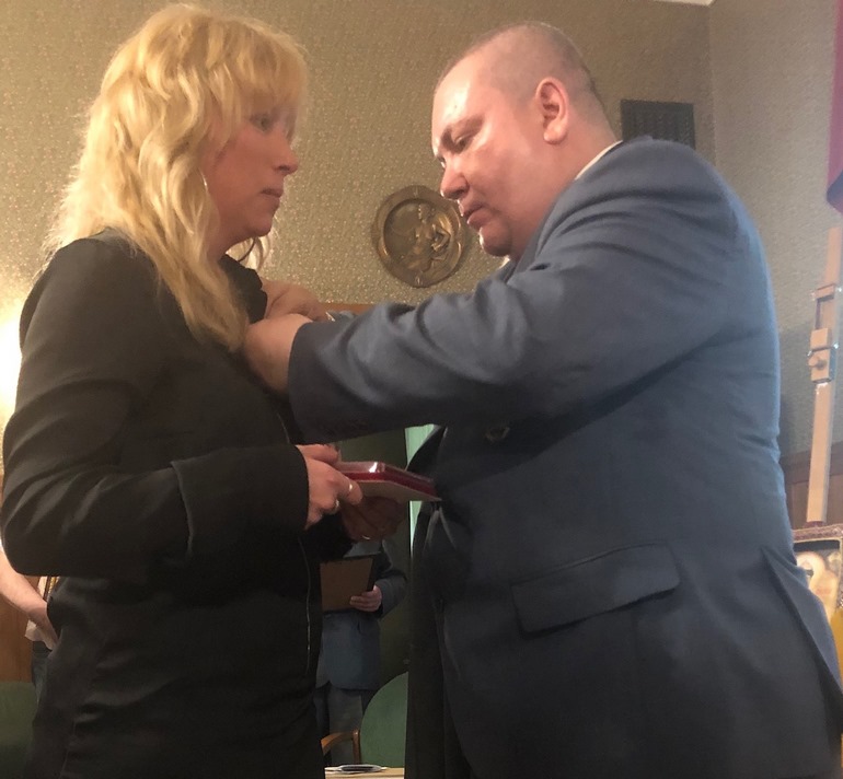 Памятной медалью «Столетие Русской Голгофы» были отмечены «многолетние миссионерские и просветительские труды, служение Богу, Царю и Отечеству» Заведующую филиалом МИКЦ «Особняк В.Д. Носова» Любовь Александровны Марихбейн.
