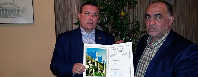 He has a commendation from His Eminence Metropolitan Laurus, First Hierarch of the Russian Orthodox Church Outside of Russia (2006), and a commendation from His Eminence Metropolitan Hilarion, First Hierarch of the Russian Orthodox Church Outside of Russia (2008), and a Commander of the Order of Glory of Russia.